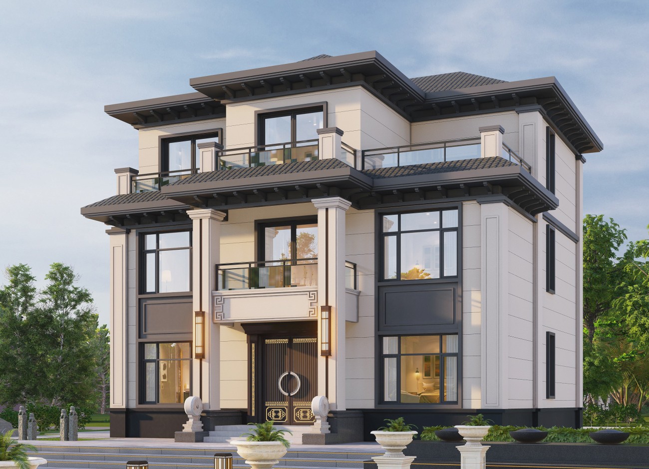 郫县17 三层新中式(10x12米)-【易设计】
